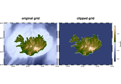 >>> import pygmt >>> # Load the 30 arc-minutes Earth relief grid, with a longitude range of 10° E to >>> # 30° E, and a latitude range of 15° N to 25° N >>> grid = pygmt.datasets.load_earth_relief( ... resolution="30m", region=[10, 30, 15, 25] ... ) >>> # Report the minimum and maximum data values >>> [grid.data.min(), grid.data.max()] [np.float32(183.5), np.float32(1807.0)] >>> # Create a new grid from an input grid. Set all values below 1,000 to 0 and all >>> # values above 1,500 to 10,000 >>> new_grid = pygmt.grdclip(grid=grid, below=[1000, 0], above=[1500, 10000]) >>> # Report the minimum and maximum data values >>> [new_grid.data.min(), new_grid.data.max()] [np.float32(0.0), np.float32(10000.0)]