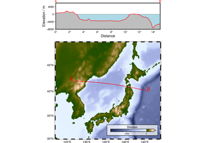 crossprofilewe can save the (possibly resampled) original lines to dfile [Default only saves the cross-profiles]. The columns will be lon, lat, dist, azimuth, z1, z2, … (sampled value for each grid).profile (str) – line[,line,…][+aaz][+c][+d][+g][+iinc][+llength][+nnp][+oaz][+rradius]. Instead of reading input track coordinates, specify profiles via coordinates and modifiers. The format of each line is start/stop, where start or stop are either lon/lat (x/y for Cartesian data) or a 2-character XY key that uses the text-style justification format to specify a point on the map as [LCR][BMT]. Each line will be a separate segment unless +c is used which will connect segments with shared joints into a single segment. In addition to line coordinates, you can use Z-, Z+ to mean the global minimum and maximum locations in the grid (only available if a single grid is given via outfile). You may append +iinc to set the sampling interval; if not given then we default to half the minimum grid interval. For a line along parallels or meridians you can add +g to report degrees of longitude or latitude instead of great circle distances starting at zero. Instead of two coordinates you can specify an origin and one of +a, +o, or +r. The +a sets the azimuth of a profile of given length starting at the given origin, while +o centers the profile on the origin; both require +l. For circular sampling specify +r to define a circle of given radius centered on the origin; this option requires either +n or +i. The +nnp modifier sets the desired number of points, while +llength gives the total length of the profile. Append +d to output the along-track distances after the coordinates. Note: No track file will be read. Also note that only one distance unit can be chosen. Giving different units will result in an error. If no units are specified we default to great circle distances in km (if geographic). If working with geographic data you can use