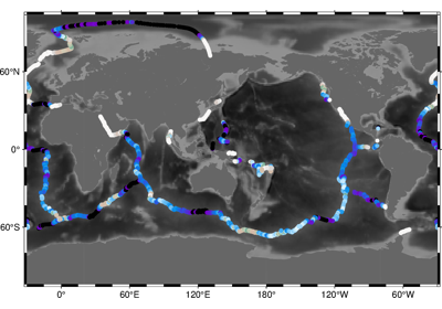 >>> import pygmt >>> # Load a grid of @earth_relief_30m data, with a longitude range of >>> # -118° E to -107° E, and a latitude range of -49° N to -42° N >>> grid = pygmt.datasets.load_earth_relief( ... resolution="30m", region=[-118, -107, -49, -42] ... ) >>> # Load a pandas dataframe with ocean ridge points >>> points = pygmt.datasets.load_sample_data(name="ocean_ridge_points") >>> # Create a pandas dataframe from an input grid and set of points >>> # The output dataframe adds a column named "bathymetry" >>> output_dataframe = pygmt.grdtrack( ... points=points, grid=grid, newcolname="bathymetry" ... )